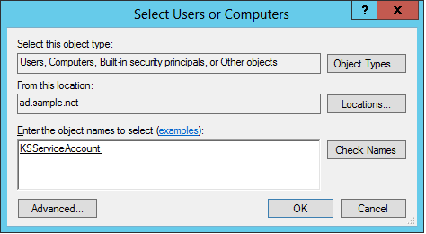 DistinguishedName : CN=KSServiceAccount,CN=Users,DC=ad,DC=sample,DC=net