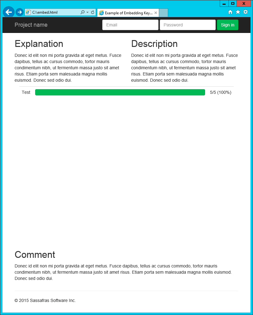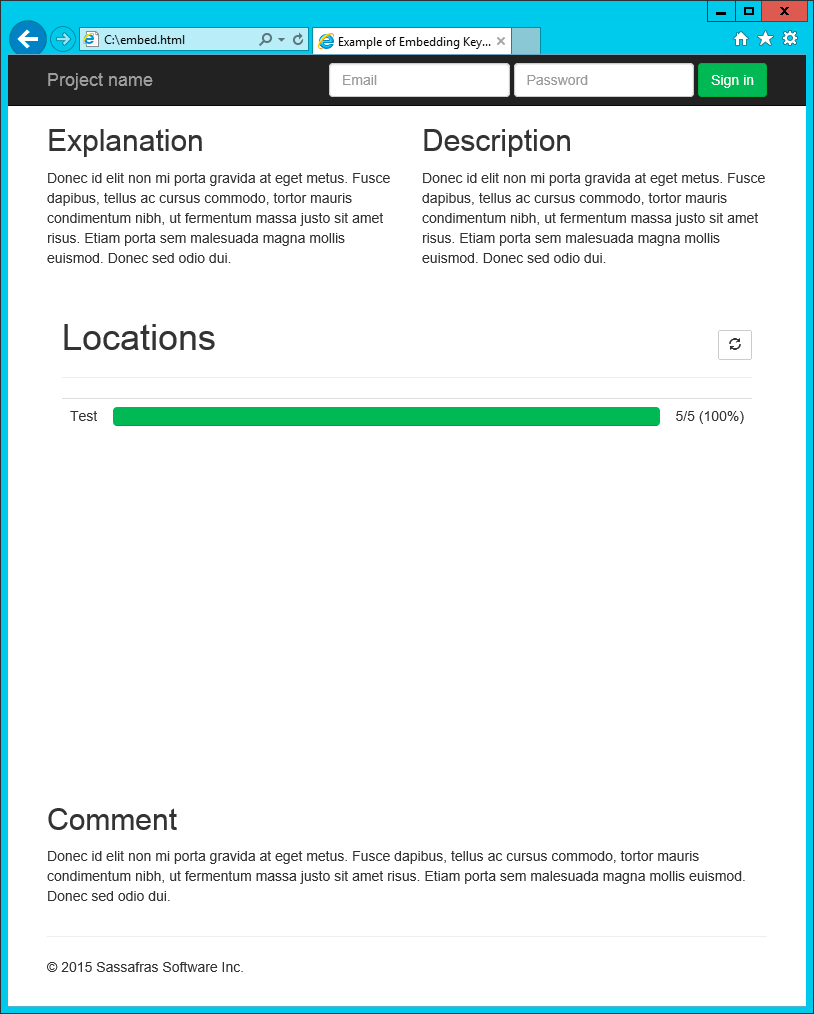 KeyReporter pages can be embedded in external web pages using an Inline Frame, or “iframe”. This allows you to wrap KeyReporter content within a page design that is consistent with your organization's web site. Navigation within the embedded frame will remain on the KeyReporter pages, while navigation outside the frame is controlled by the embedding page.