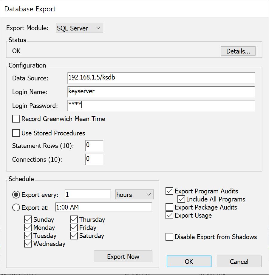 - Exporting is NOT required. KeyServer uses internal, proprietary databases and exporting is never needed. Even when exporting is turned on, KeyServer never consults the external databases, it merely exports a copy of the internal data.