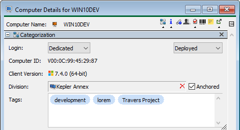 Valued Tags consist of a tag and a value for that tag, separated by a colon. The tag portion is just like any other tag (valued or not). The tag appears in the list in the main window, but the value does not. If an item is assigned a tag, that tag for that item can only have one value. In other words, a computer can not have both Major:Chem and Major:Art because it can only contain one value under Major. It can however have Major:Chem and Minor:Art as those are values under different tags. Because the values do not appear in the Computers Window UI for easy drag and drop (by design, as the list could become unwieldy), using the admin scripts for batch tagging could be very useful.